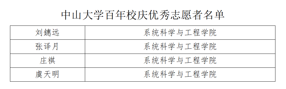 亚洲天堂 “百年校庆优秀志愿者”名单