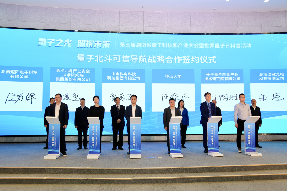 大会期间,伍蔡伦教授参加了“量子北斗可信导航战略合作”签约仪式,后续将进一步深化与各方在量子科技领域的交流合作。同时,亚洲天堂 与长沙北斗院还联合承担了湖南省十大关键技术攻关项目“量子北斗可信导航关键技术研发及产业化”,作为湖南省头号科技创新工程,是双方共建的“智能时空校企联合实验室”结出的又一科技硕果。本项目重点围绕量子科技与相关领域关键技术问题开展关键技术攻关和产业化应用,持续加强校地、校企协同创新,助力量子科技创新体系建设和产业高质量发展。